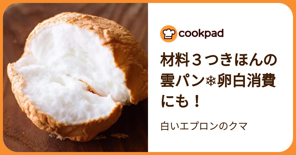 - (つくれぽ 143件) 材料3つきほんの雲パン (卵白 2個利用)