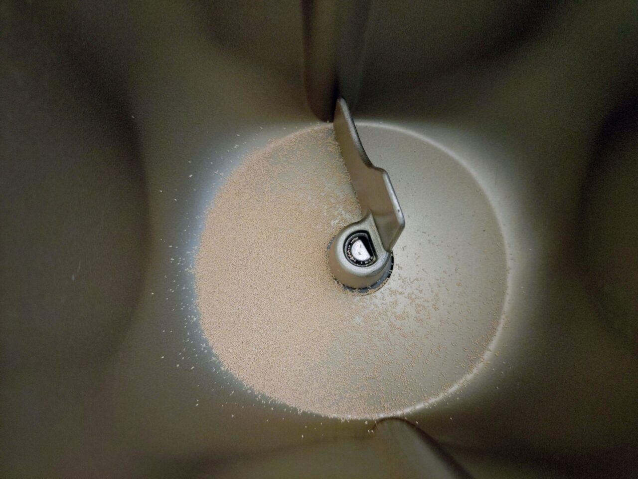 • ホームベーカリーの早焼き(具入り)コースを選んでスタートする。