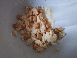 • 牛乳を少しずつ加えながらまとまりを出す(目安8g程度)。