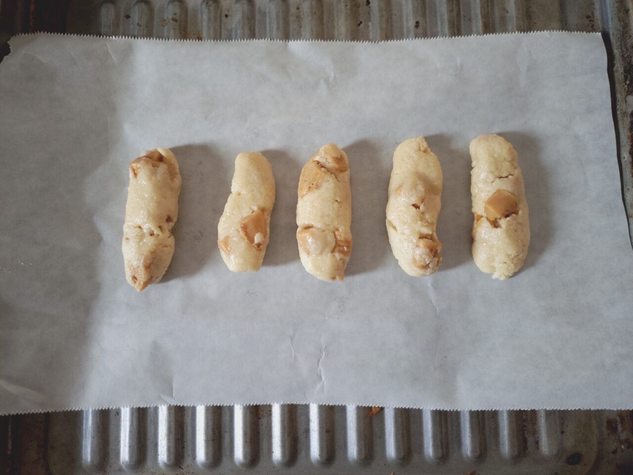 2. 材料を混ぜて、成型して、オーブン160℃で10分強焼いたら完成です!